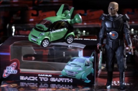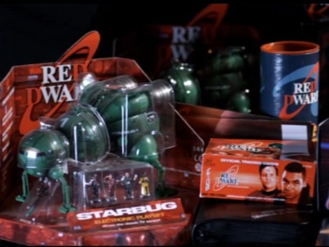 It was later in episode two, however, that we were treated to a veritable bonanza of blink-and-you'll-miss-it detail - courtesy of the piles of Red Dwarf merchandise that bedecked the comic shop They Walk Among Us. From trading cards to Corgi ship models to the magnificent Kryten model kit by Sevans, it would take the most ardent of collectors to recognise everything - but sadly one item, the lovely "Carbug" die-cast model, was merely a one-off prop created for the special rather than a toy that would ever see mass production...