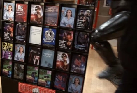Elsewhere, the creation of a number of fake DVD cases for the "Price Smashers" scene gave eagle-eyed viewers the chance to catch a reference to one of the show's earliest in-universe fictional creations - as Mugs Murphy appeared on one case, in exactly the same "D-D-Don't Shoot!" design that had once adorned Lister's t-shirts. And that's not all: other covers show the title of two movies referenced in earlier series, in the shape of Die Screaming With Sharp Things In Your Head (Demons & Angels) and Attack of the Giant Savage Completely Invisible Aliens (Krytie TV).