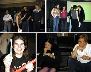 In between rounds, it was announced that the first person to grab a toothbrush from their room and make it back to the hall would be awarded a prize. The winner claimed their prize while grinning from ear to ear - just as well her teeth were clean...