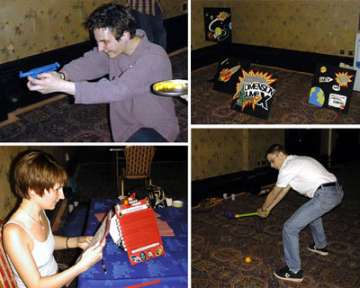 Let the games begin! Oh yes, the competitions aren't over yet. While the guests signed autographs, fans were encouraged to compete in the Red Dwarf Olympics, four games of skill, luck and drunken rambling. Cat Golf featured once again, alongside Gunmen of the Apocalypse and Space Shooter games. But it was Red Dwarf Outburst that separated the fans from the friends who were dragged along, with contestants trying to name as many significant aspects of an episode as possible against the clock.