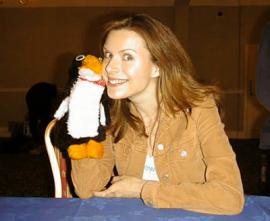 The Costume Competition was hosted by Lee Cornes in the one spare costume in the building - a Betty Rubble dress. Worryingly, it seemed surprisingly well-suited to his petite frame. Judging this year were effects-meister Mike Tucker, Chloƫ Annett, GNP General Manager Helen Norman and, oh yes, me and Mr Flibble.