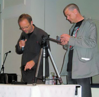 Still, what you really want is the people themselves, in the flesh, and Robert Llewellyn soon obliged. Running a tad late and scrambling apologetically into the hot-spot, Robert's first move was to set up his own video camera.