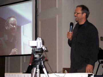 Finally getting underway, the self-filming topic continued as Robert was asked about it2i2. "After 25 years I finally found out what a producer does!" It is not, apparently, a role he'd enjoyed - even taking his crew to the wrong internet café location to shoot scenes. Oh, and apparently his partner, Judy, thinks that the fat-suit version of Robert could happen for real...