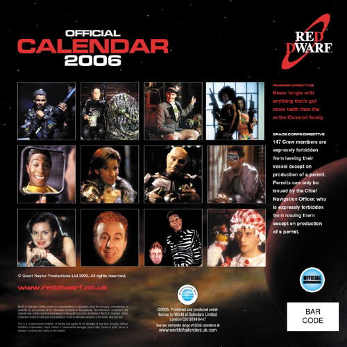 If only Rimmer had known. Instead of wasting all that time creating his own revision timetable, he could have plucked this handy planner from the shelves and spent his time, well, revising. No matter. Here, as promised, is the 2006 Red Dwarf calendar from World of Calendars.