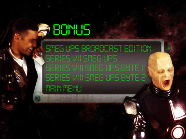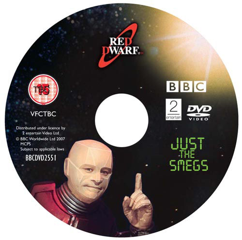 We've added to the cover's 'film strip' a shot of Lister and Kryten on the set of the tenth anniversary Smeg Ups show (included on this DVD for the first time anywhere), and the back cover cover text naturally comes from both Smegs VHS tapes. (Though we have removed the dreadful line 'A smegfest for all Dwarfies'. How did that slip through?!)