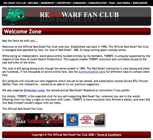 The Official Red Dwarf Fan Club has revamped its website with a funky new design. The crisper, cleaner, tidier design should make it even easier for fans to find out all about