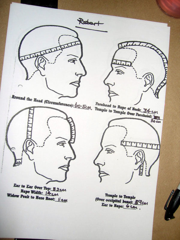 - On Thursday, November 27th the team doing the job also took measurements of Robert's head. (Pictured.)
