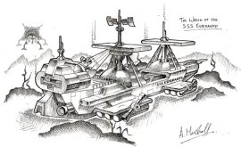 Matting, as ever, was used to place Red Dwarf next to Starbug, the Holoship and, for Demons and Angels, itself. Starbug was given an underwater make-over - complete with the first glimpse of backward-pointing legs, also used with Terrorform's caterpillar tracks - to land beside the impressive Esperanto model, and a snow-covered miniature set was constructed for Dr Lanstrom's research facility - complete with Starbug's 'scouter'.